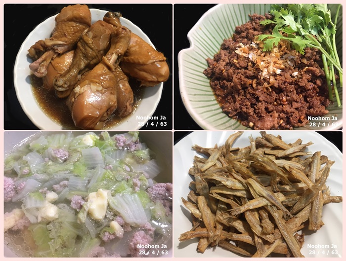 อาหารการกินในเช้าวันอังคารที่ต้องอยู่บ้านวันนี้ น่องไก่ตุ๋นยาจีน ลาบคั่ว ต้มจืด ปลากะตั๊กอบกรอบ ขอให้ บรรณสรณ์และผองเพื่อนโชคดี วันนี้มีหนังสืออะไรแนะนำบอกมาทีนะ