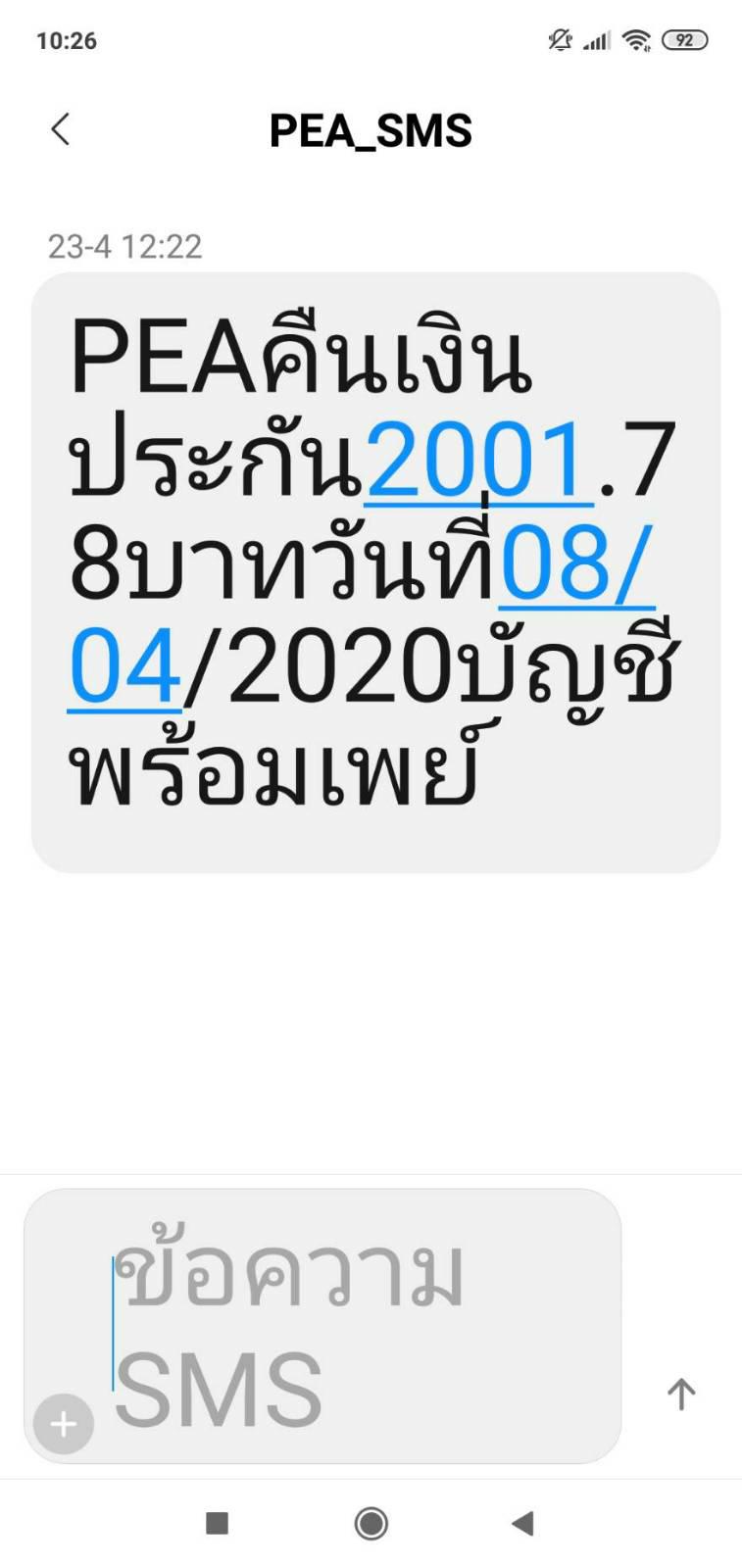 ไฟฟ้าข้อความว่าคืนเงินประกันแล้ว แต่ไม่มีเงินเข้า
