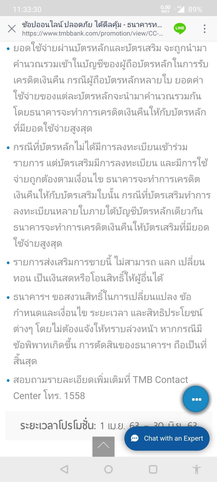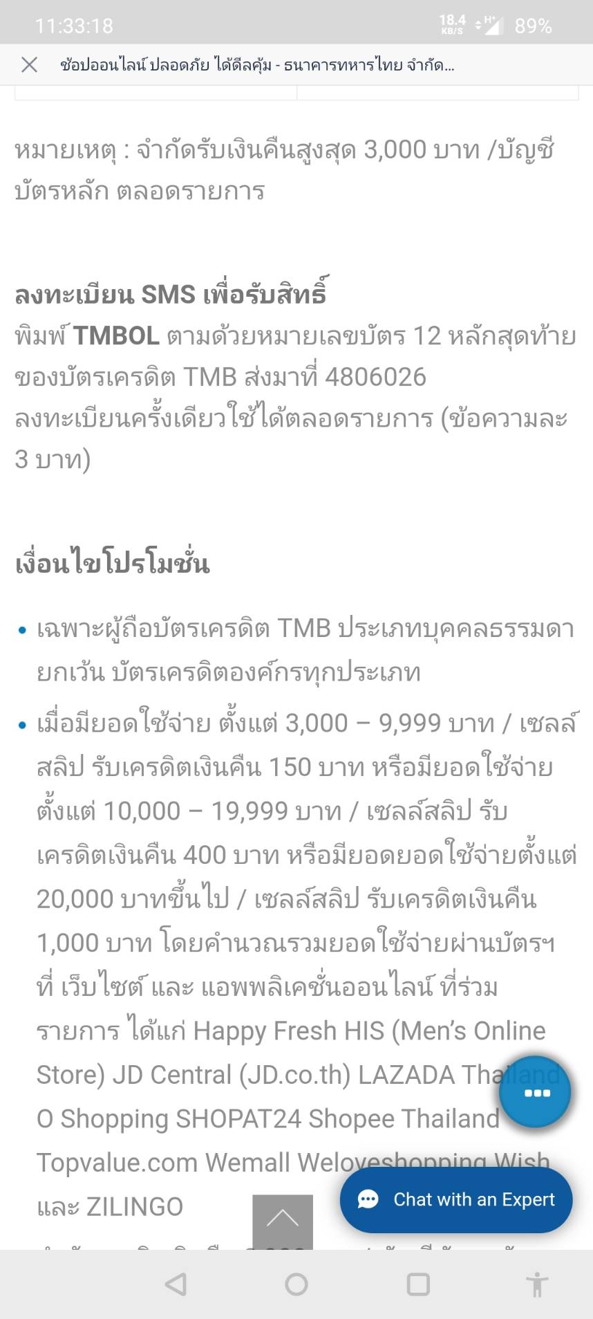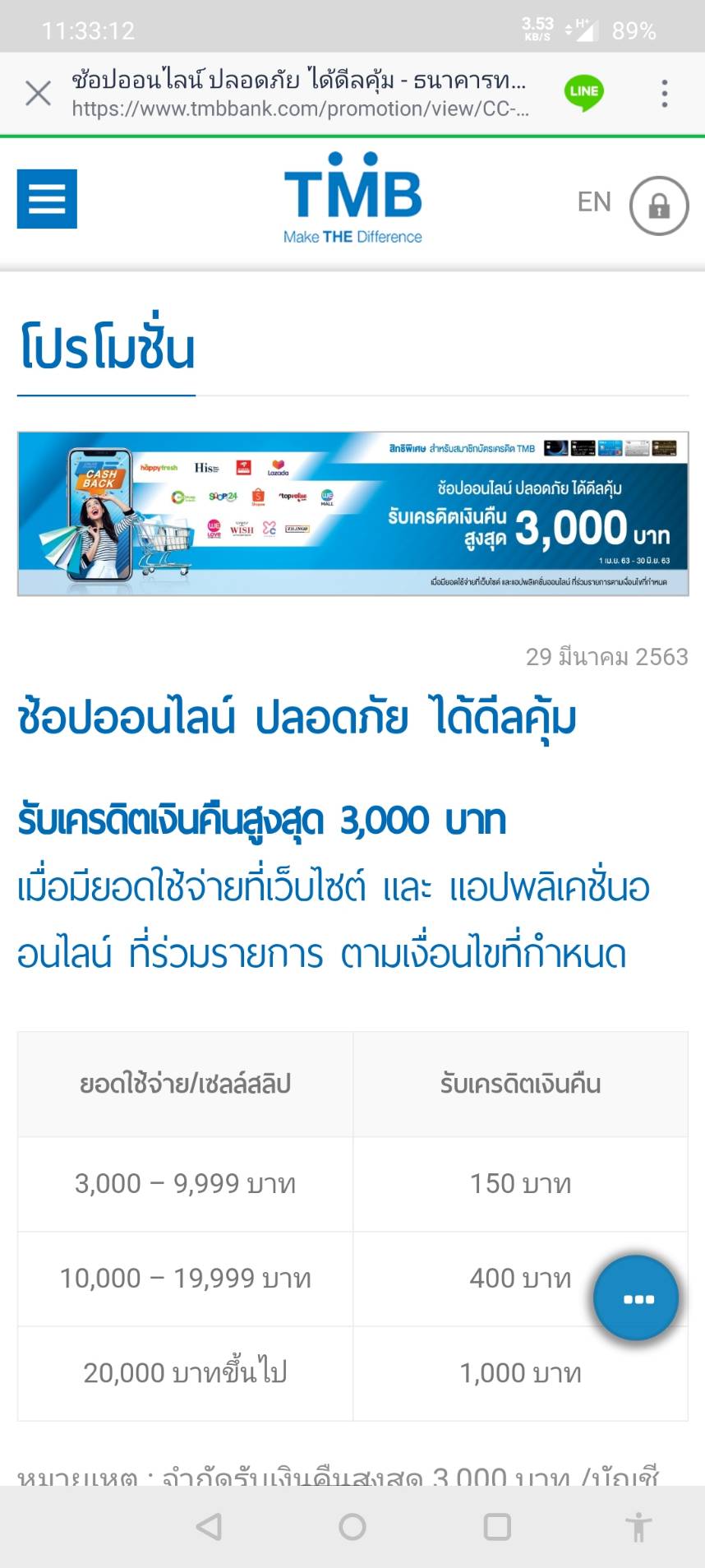 สอบถามว่า โดยใช้จ่ายซื้อสินค้าทางออนไลน์ในบริษัทดังแจ้งไว้ 20,000 บาท ต่อ เซลล์สลิป. ได้รับเงินคืน 1000 บาท