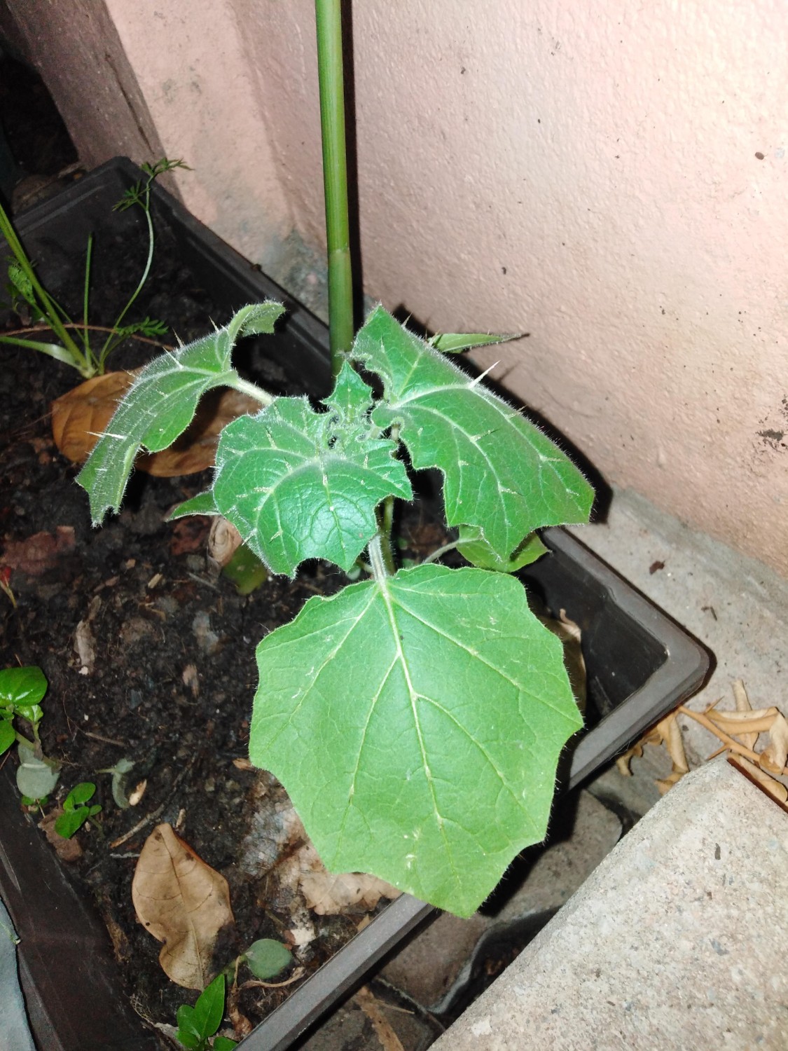 ขึ้นมาในกระถาง ถามคุณภรรยา บอกว่าน่าจะเป็นมะอึก เริ่มงงครับ