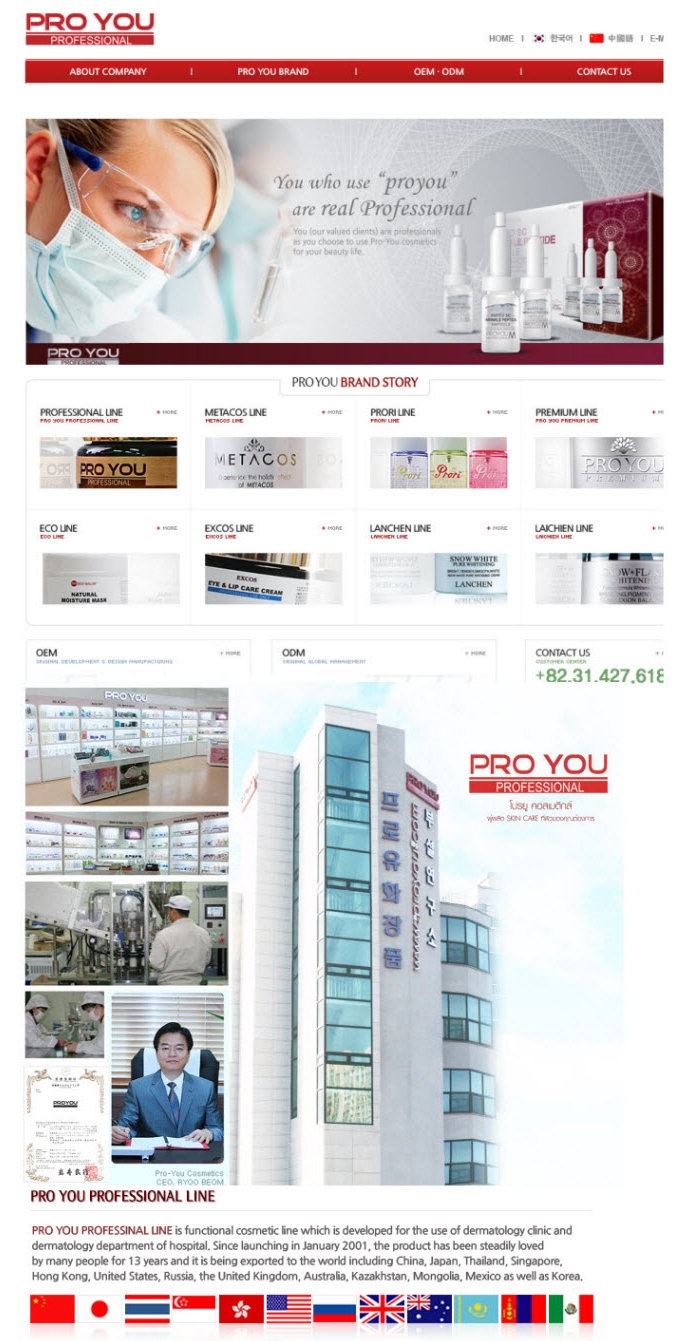 PROYOU เป็นเวชสำอางเกาหลี ส่งออกทั่วโลก โดยบริษัทได้รับผลิต"เวชสำอางครบวงจร"ให้คลินิคและโรงพยาบาลทั่วเกาหลีมานาน มีการจดสิทธิบัตรอย่างต่อเนื่อง วิจัยและผลิตเวชสำองให้คลินิกผิวหนังเกาหลีใต้รวมแล้วกว่า 5,000 แห่ง จึงมีสายผลิตภัณฑ์ที่ครอบคลุมทุกปัญหาผิว