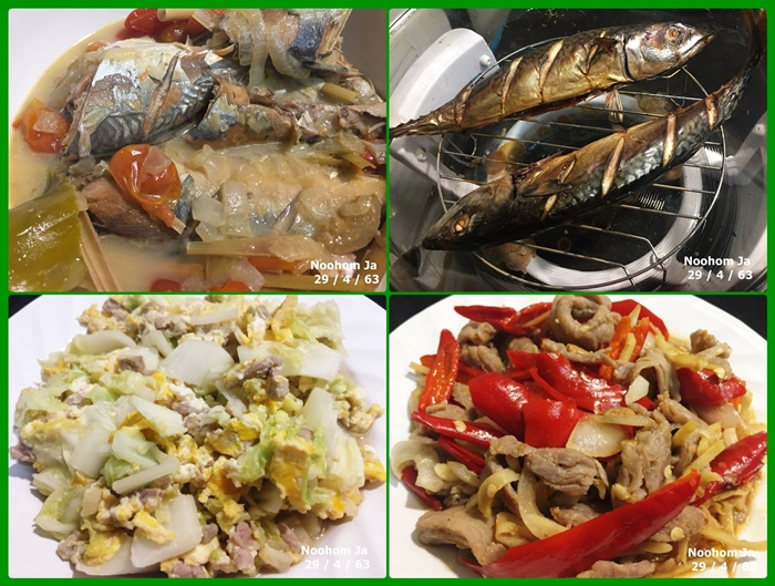 เชียงใหม่วันนี้ท้องฟ้าสดใสไร้หมอกควันสลับกับการมีฝนพรำในบางพื้นที่ตอนเช้าอุณหภูมิ 24 องศา จนขี้เกียจตื่นมาทำอาหาร เดี๋ยวจะไม่มีอะไรกินตอนอยู่บ้านเมนูเช้านี้ ปลาทูต้มกะทิเปื่อยนิ่มกินได้ทั้งก้าง ซาบะตัวละ 20 บาทย่างจิ้มซีอิ้วหวาน ผัดผักกาดขาวใส่ไข่ แก้ไอแก้หวัดด้วยเมนูหมูผัดพริกขิง ขอให้ครองสุขและผองเพื่อนรอดพ้นจากภยันอันตรายทั้งปวง ดำรงชีวิตอยู่ได้อย่างเป็นสุข