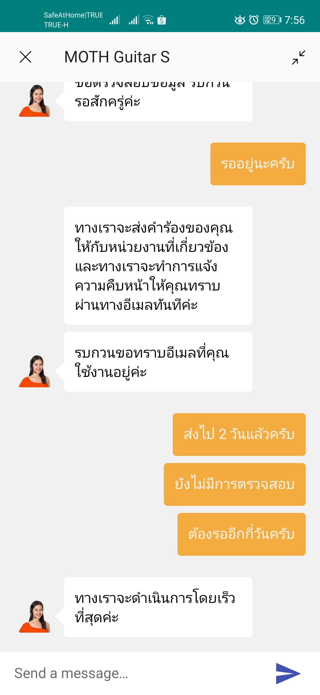 พอสอบถามผ่าน email และใน app ก็ตอบว่าให้รอ
