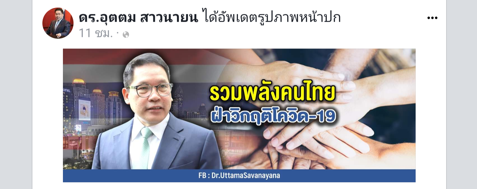 ⛈มาลาริน/ฝนน่าจะตกทั่วฟ้าแล้วนะคะ..คุณอุตตมโพสต์ข้อความผ่านเฟซบุ๊ก เดินหน้าเพื่อพี่น้องชาวไทย สู่ยุค New Normal