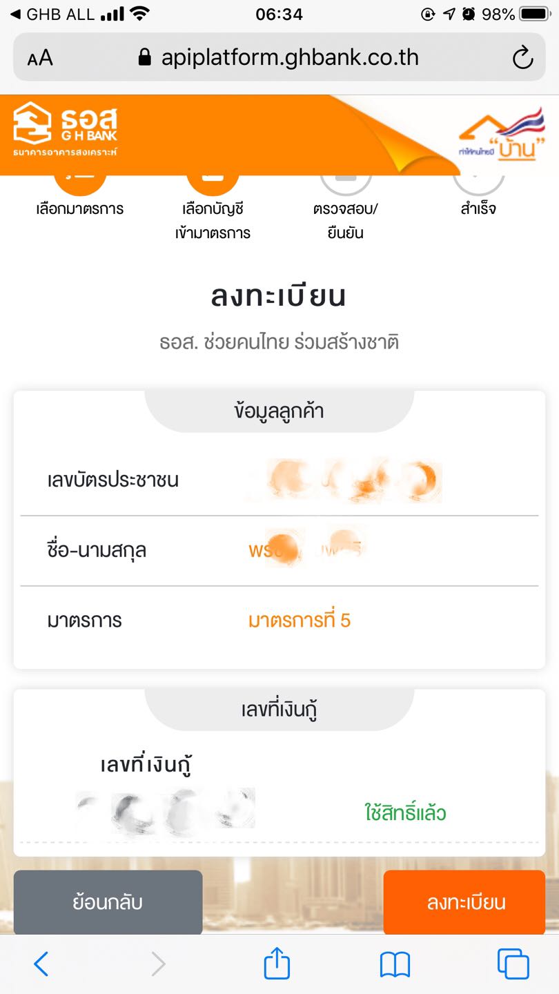 กรอกเลข 13 หลัก และ เบอร์โทรที่ใช้กับ ธอส. แล้ว ขึ้น ขออภัยเบอร์โทรศัพท์ถูกใช้งานแล้ว พอดีเคยลงทะเบียนแต่ไปลบเพื่อนในไลน์ของ GHB พอเพิ่มเพื่อนเข้าไปใหม่ข้อมูลใน