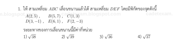 ระยะทางที่เลื่อนคือ SQR 1^2 + 6^2 = SQR 37