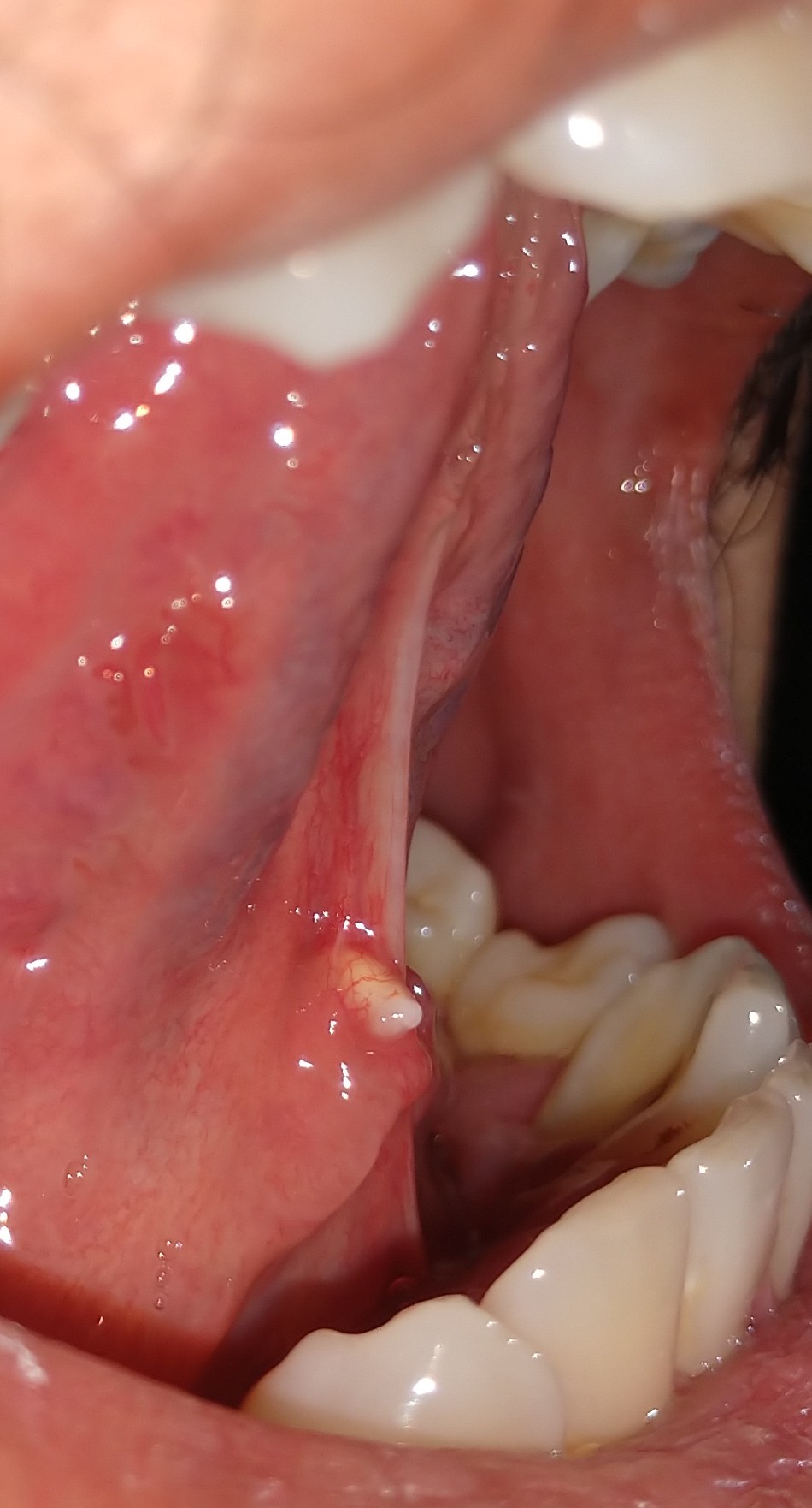 2 วัน ก่อน เหมือนมีตุ่มในปาก แต่พอไปส่องกระจกดูมันก็เหมือนติ่งเนื้ออยู่ใต้ลิ้นครับ ผมเคยเป็นแต่ไม่ได้สนใจก็ปล่อยไปทันก็หายเอง แต่คนั้งนี้อยากถามดูว่สมันคืออะไรครับ ขออภัยที่รูปไม่ชัดนะครับ