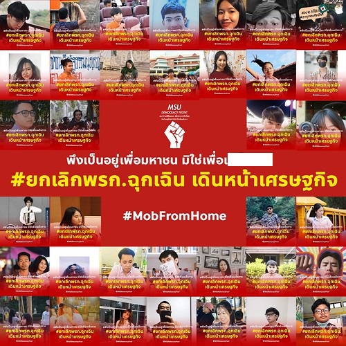 30 เม.ย. 2563 ผู้สื่อข่าวรายงานว่า กลุ่มนักศึกษาจำนวนหลายกลุ่ม จากหลายมหาวิทยาลัยทั่วประเทศกำลังเคลื่อนไหวกันในโลกออนไลน์ เปิดแคมเปญยกเลิก พ.ร.ก.ฉุกเฉินฯ เดินหน้าเศรษฐกิจ เชิญชวนผู้ได้รับผลกระทบจากมาตรการควบคุมการแพร่ระบาดของโรคโควิด-19 ถ่ายรูปชูป้ายพร้อมติดแฮชแท็ก #ยกเลิกพรกฉุกเฉินเดินหน้าเศรษฐกิจ เพื่อรณรงค์ให้รัฐบาลยกเลิกมาตราการ พ.ร.ก.ฉุกเฉินฯ และหันมาใช้ พ.ร.บ.โรคระบาดฯ แทน หวังคลายล็อคเศรษฐกิจให้ประชาชนสามารถออกมาทำมาหากิน สร้างรายได้เยียวยาตัวเองหลังสถาการณ์โรคระบาดโควิด-19 ลดระดับการแพร่ระบาดลง