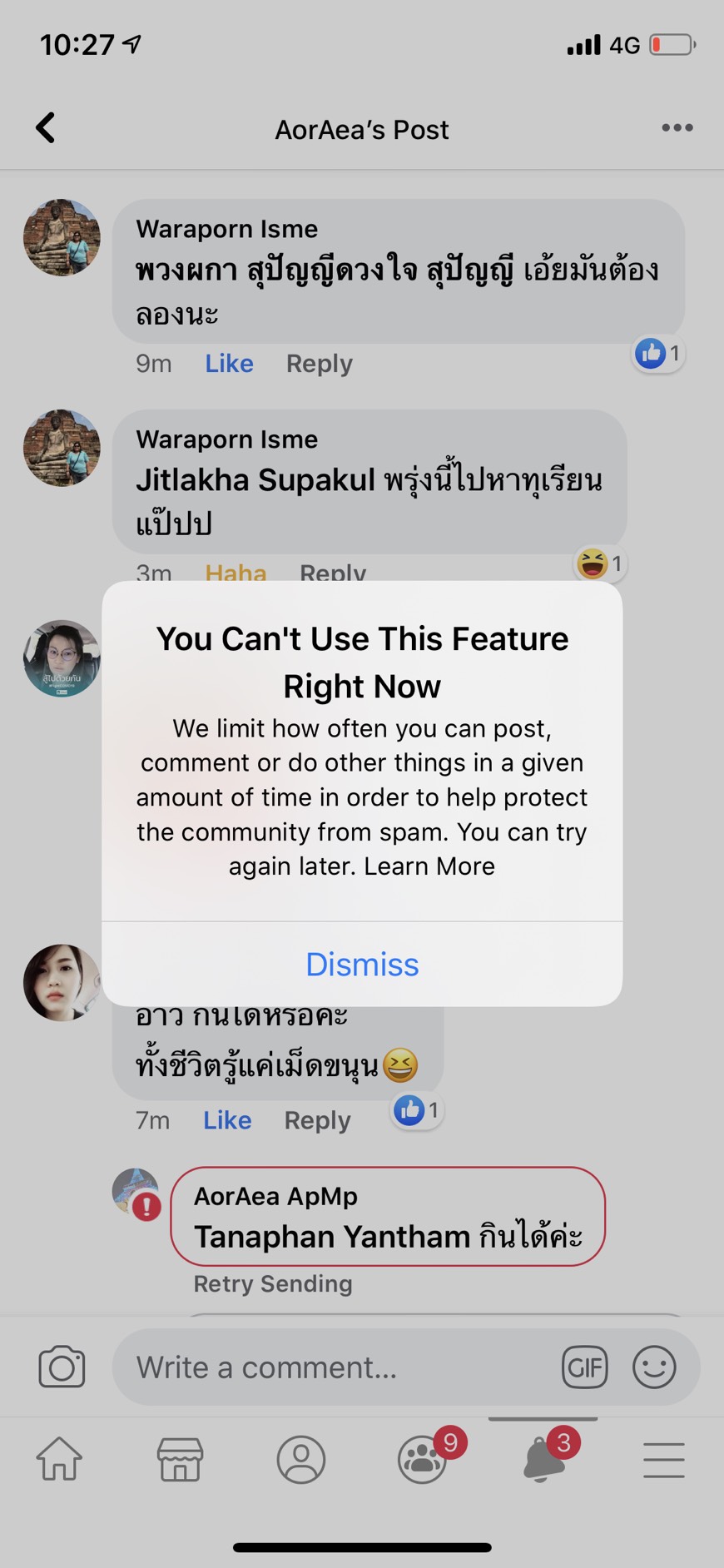 ถามวิธีแก้ โดน facebook block ไม่ให้ comment