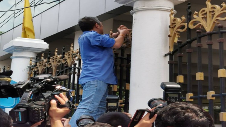 คนขับแท็กซี่ป่วนคลัง! ปีนรั้วขอพบ “อุตตม” ประท้วงให้รัฐโอนเงินเยียวยา 5 พันบาททันทีวันนี้