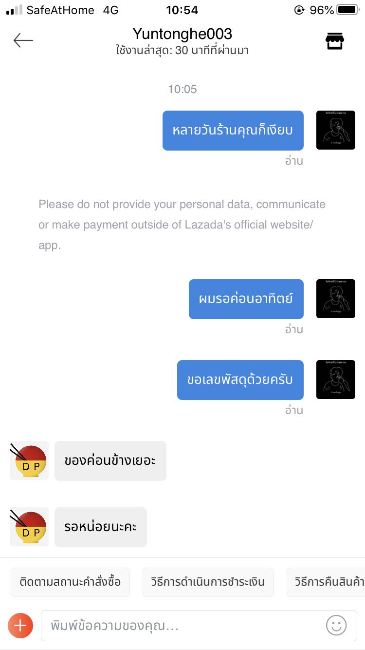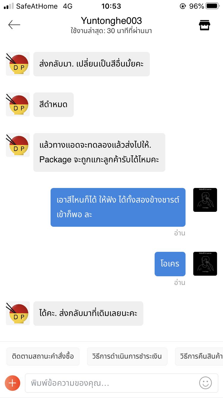 สั่งของผ่านลาซาด้าจากร้านนี้Yuntonghe003 ยังไม่ทันจะได้ใช้ทดลองใช้หูฟังฟังได้ข้างเดียวชาร์ทก็ไม่เข้าทั้งสองครั้งที่สั่งของจากแล้วทางร้านก็ส่งสินค้ากลับมาให้เรารอบแรกก็เปิดมาใช้ก็เป็นเหมือนเดิมคือหูฟังฟังได้ข้างเดียวชาร์ทก็ไม่เข้าเป็นหูฟังไร้สายรอบที่สองส่งของ คืนเหมือนทางร้านไม่ได้ตรวจสอบอะไรเลยยัง รอจากทางร้านขอเลขพัสดุเป็นอาทิตย์ส่งของคืนรอบที่สองตั้งแต่วันที่ 14 เมษายน 2563 ณเวลานี้ยังไม่ได้ของที่เคมคืนเลยแล้วทางร้านก็แชทกับเรา ว่าสินค้ารับประกันแค่หนึ่งเดือนทางร้านจะไม่รับผิดชอบใดใดทั้งสิ้นเรารอของประมาณสองอาทิตย์ทักแชทไปถามกลับเหมือนโดนเหวี่ยงกลับมาเราก็งงเราไม่ได้ทำสินค้าของทางร้านเสียหายเพียงแค่เราเคมคืนเรารอต้องสองอาทิตย์เกือบเป็นเดือนจนสิ้นเดือนของเดือนนี้แล้วก็ยังไม่ได้สินค้าก็ทักกลับไปกลับได้คำตอบว่ารอตามคิวนะคะทั้งทั้งที่ส่งของมาตั้งเป็นสองอาทิตย์แล้วไม่เคมคืนให้เราสักทีเหมือนขายดีมากเรามีภาพประกอบแล้วจะทางร้านก็ขอหมายเลขแท็กเราใหม่ไปอีกรอบหนึ่งว่าไม่ชัดเดี๋ยวจะตรวจสอบให้ค่ะเพราะโทรไปทางร้านก็บอกว่าแอดมิน