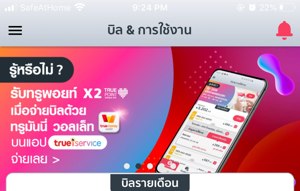จ่ายบิล ผ่านแอพ True iservice ทำไม ไม่ได้รับ true point 2 เท่า