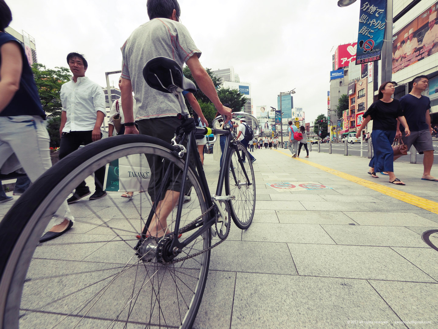 จักรยานกลองชุด จอดอยู่ใกล้ๆ ป้ายกูลิโกะ โดทงโบริ ที่โอซาก้า
