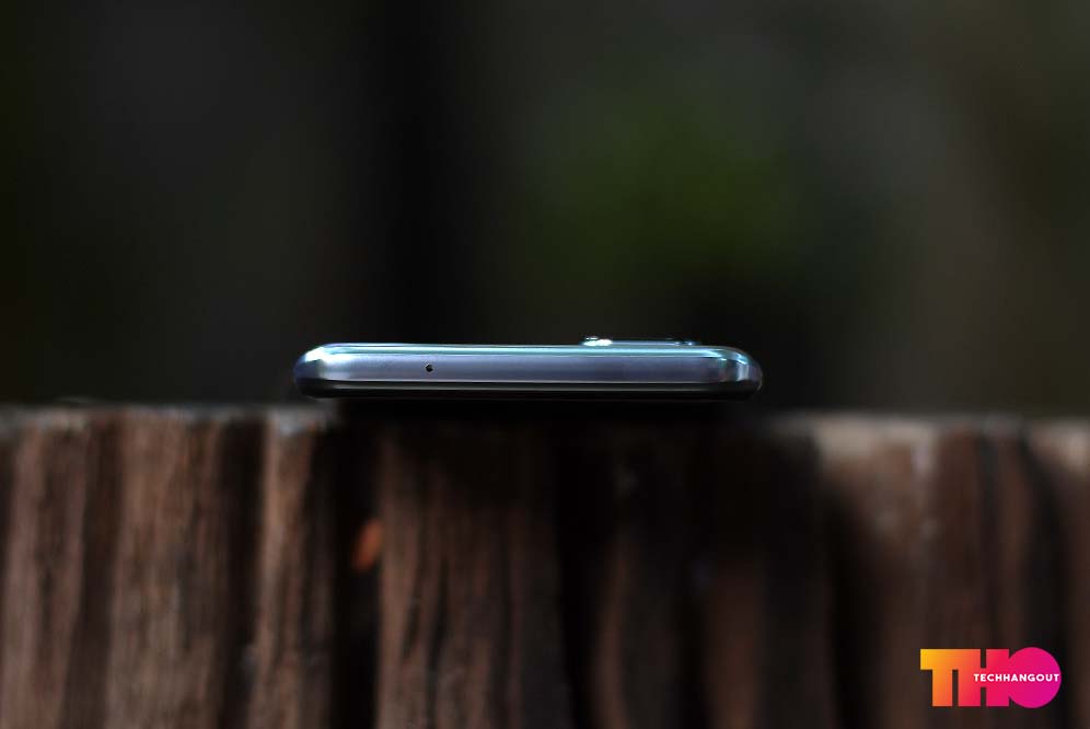 ขอบเครื่องด้านล่างนั้นจะมี รูลำโพงหลักของเครื่องพร้อมกับ รู USB-C และ รูไมค์ รวมถึง 3.5 มม. ครับจะเห็นว่าขอบเครื่องมีลวดลายนิดหน่อยปาดขอบให้ดูบางขึ้น และฝาหลังนั้นโค้งรับมือนิดหน่อยครับเมื่อมองจากมุมนี้