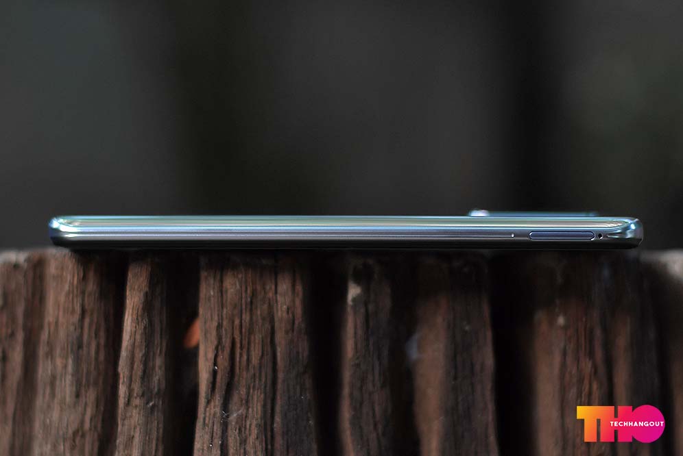 ขอบเครื่องด้านซ้ายนั้นจะเป็นถาดซิมที่รองรับ Nano SIM ทั้ง 2 ช่องและรองรับการเพิ่ม Micro-SD ด้วยเช่นกันเป็นแบบ TRIPLE SLOT ในการรองรับใช้งาน ส่วนขอบเครื่องจะเป็นสีเงินทั้งหมด พร้อมมีลวดลายตรงขอบนิดหน่อย