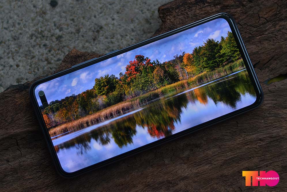 หน้าจอในรุ่นนี้ใช้งาน sAMOLED แน่นอนว่าสีสันสะใจสวยงามครับ และในครั้งนี้มาพร้อมกับหน้าจอแบบเจาะรูมุมขวาบนแบบกล้องคู่อาจจะดูใหญ่ไปนิดหน่อยในการใช้งานแต่ก็ทำให้ขอบรอบๆนั้นดูบางและสมมาตรมากขึ้น ขนาดหน้าจอให้มาที่ ขนาด 6.44 นิ้ว ความละเอียด FHD+ อัตราส่วน 20:9  วัสดุ E3 OLED มีขอบเขตสี DCI-P3 100% รับการรับรองจากสถาบัน TÜV Rheinland ประเทศเยอรมันว่าสามารถกรองแสงสีฟ้าที่เป็นอันตรายได้ถึง 42%  นอกจากนี้ยังมีเทคโนโลยี Low Brightness Anti-Flicker ป้องกันการกระพริบของหน้าจอขณะความสว่างต่ำ พร้อมกับมีฟิล์มกันรอยติดมาให้แล้วนิดหน่อยรับ และหน้าจอที่ลองนั้นสู้แสงได้กำลังดีและมีสันสันสวยงามครับ และที่ชอบคือการสัมผัสทัชอะไรก็ทำได้ดีเลยแหละไม่ต่างกับรุ่นก่อนๆครับถือว่าเรื่องสัมผัสค่ายนี้ทำได้ดีนะ มิติของภาพอะไรสวยและกว้างแต่ความสดจัดจ้านอาจจะไม่ได้เยอะมากแต่ก็สามารถปรับได้นิดหน่อยแต่สีจะเน้นความธรรมชาติและไม่เวอร์มากเกินไปครับในจอรุ่นนี้
