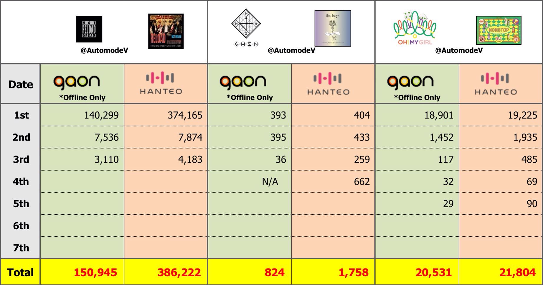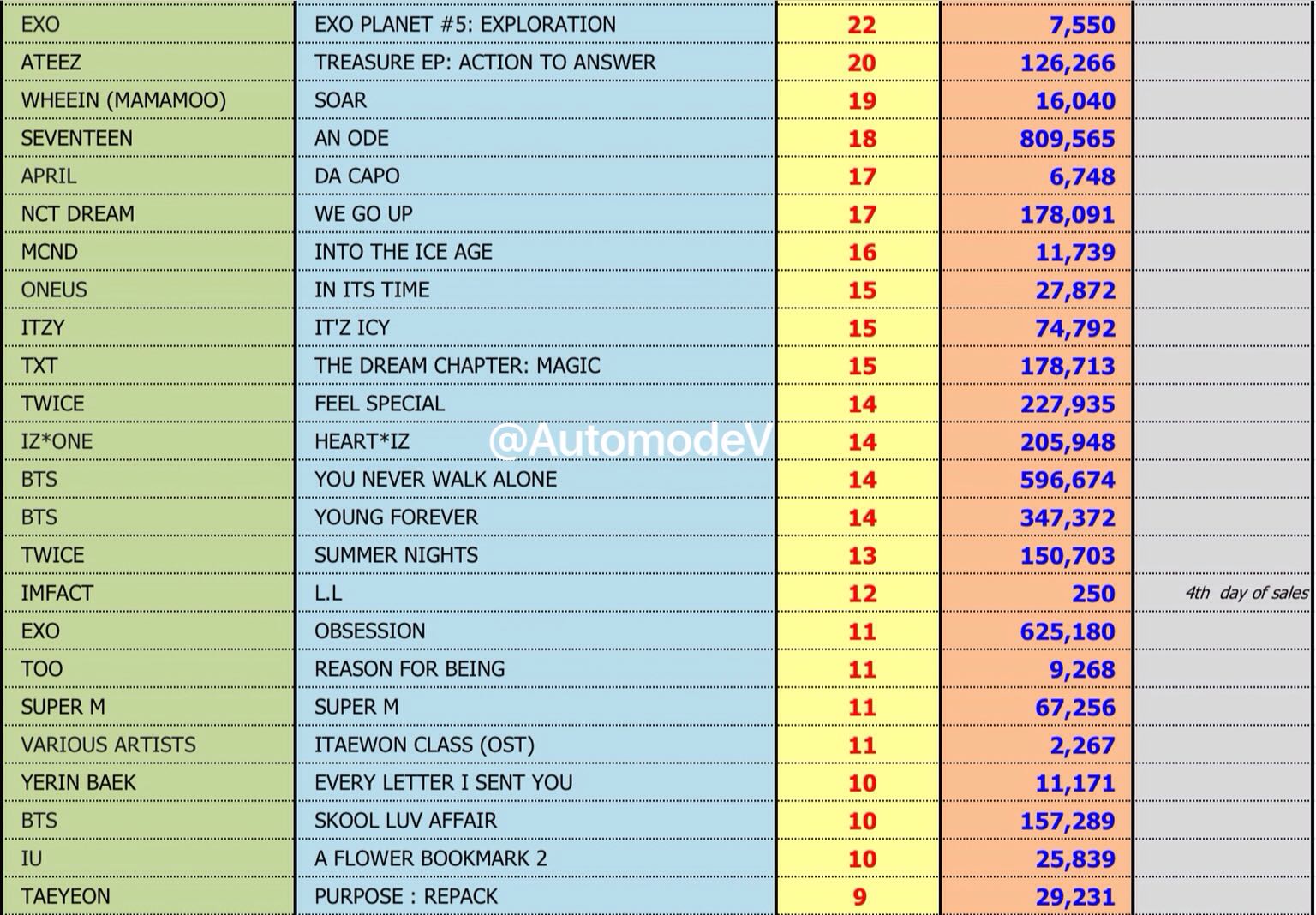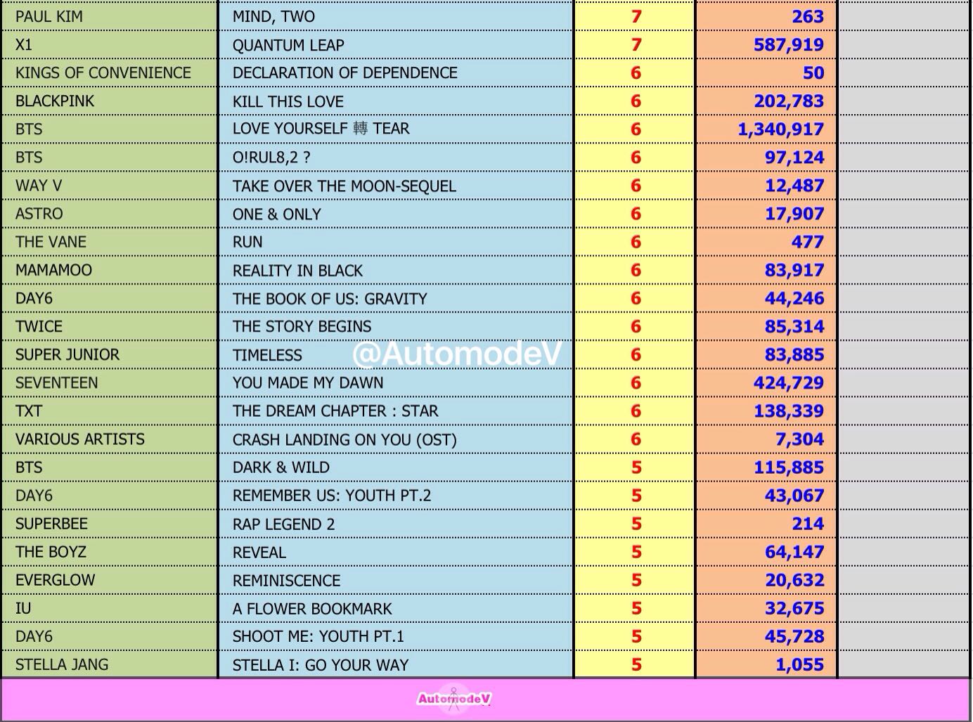 ยอดซื้ออัลบั้มจากชาร์ต HANTEO 1 พฤษภาคม 2563
