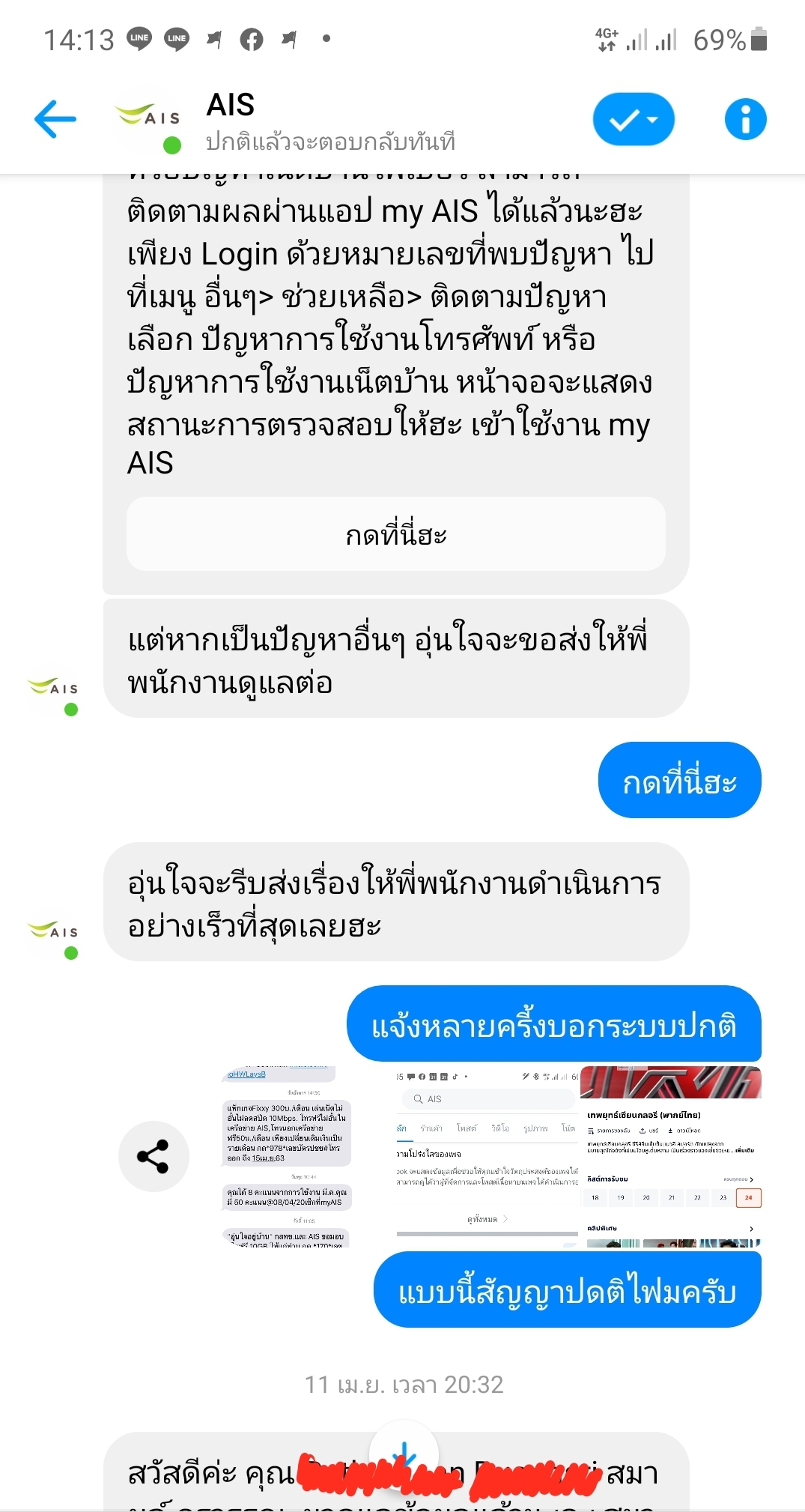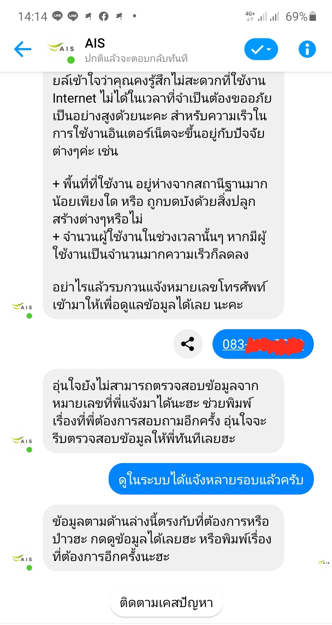ไม่ดีเลย ดู Youtube Line TV App ดูหนัง WETV เล่น ROV ไม่ต้องพูดถึง ก็หมุนนาน แจ้งทาง Call 1148 ก็บอกสัญญาปกติ แจ้งใน FB.AIS มีแต่บอต ตอบวนไปวนมา หรือเขาเลิกจ้างพนักงานแล้ว