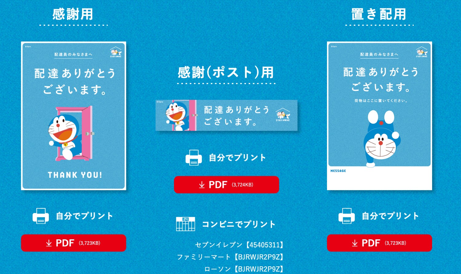 รวมถึงป้ายขอบคุณพนักงานส่งของ ที่ต้องทำงานหนักกันมากขึ้นในช่วงนี้ สามารถพิมพ์ออกมา และไปติดไว้หน้าบ้านให้กำลังใจพนักงานพี่ๆพนักงานทุกคน (มีเฉพาะภาษาญี่ปุ่น)
