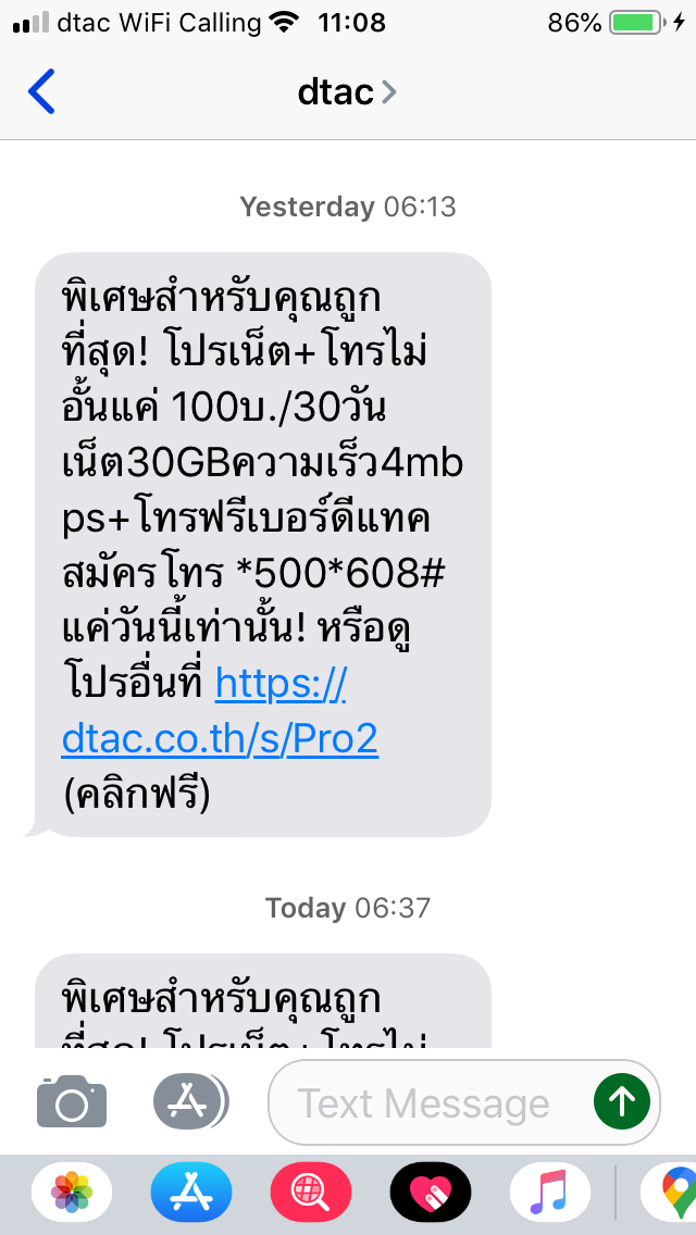 2-3 วันมานี้ ไดรับ sms โมษณาของ dtac ตอนเช้าทุกวัน ประมาณ 6:30 น