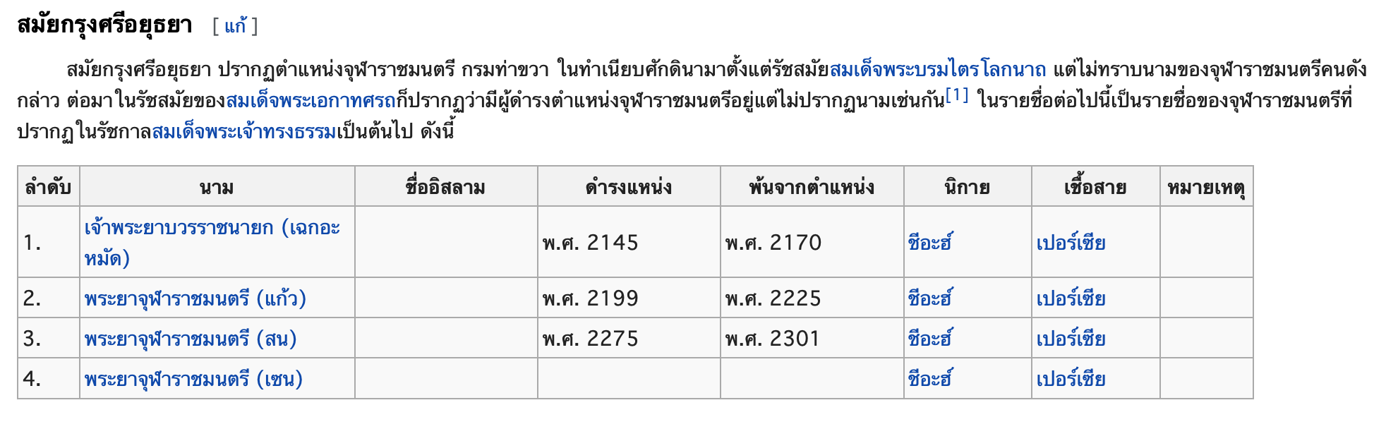 เมื่อนับย้อนหลังไปศตวรรษที่สิบเจ็ดของอาณาจักรอยุธยา ในทางปฏิบัติ พระมหากษัตริย์เป็นผู้แต่งตั้ง ผู้ที่สังคมมุสลิม ไว้ใจและนับถือ ให้เป็นผู้นำมุสลิม เป็นที่ปรึกษาของพระมหากษัตริย์ ในเรื่องที่เกี่ยวกับศาสนาอิสลาม ตำแหน่งนี้แต่งตั้งขึ้นเป็นครั้งแรกในสมัยราชอณาจักรกรุงศรีอยุทธยา ในสมัยพระบาทสมเด็จพระทรงธรรม (1620-1629)  ซึ่งมีอยู่สี่คน จุฬาราชมนตรีทั้งสี่คนนี้ ได้กลายกลายเป็นขุนนางและทำงานอยู่ในกรมเจ้าท่า มีหน้าที่ในการติดต่อกับต่างประเทศ ส่วนใหญ่เกี่ยวกับการค้าและการควบคุมประชากรมุสลิมในราชอาณาจักร
