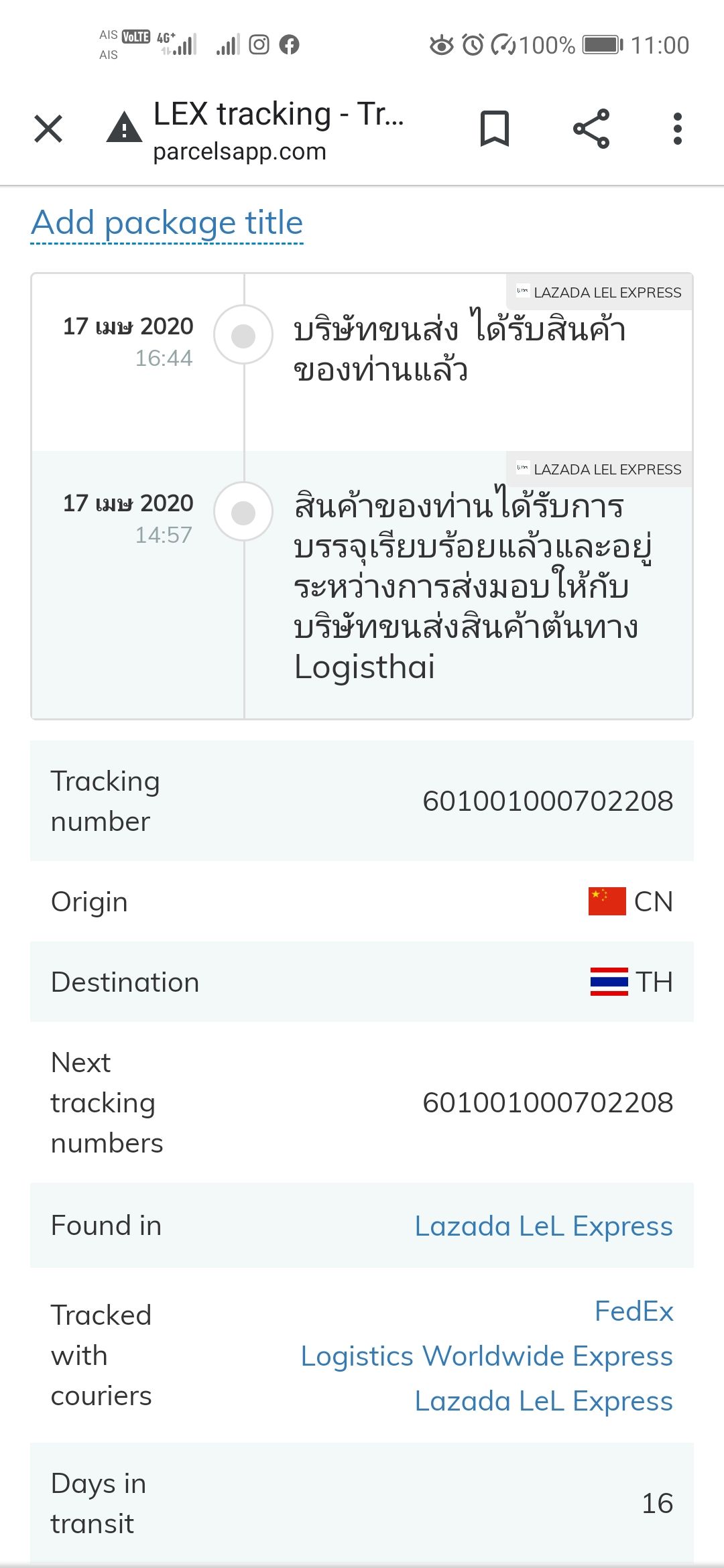 และเอาเลข tracking ไปเช็ค ก็เห็น Status delivery ยังคงอยู่ที่ Logisthai ตั้งแต่ 17 เมย
