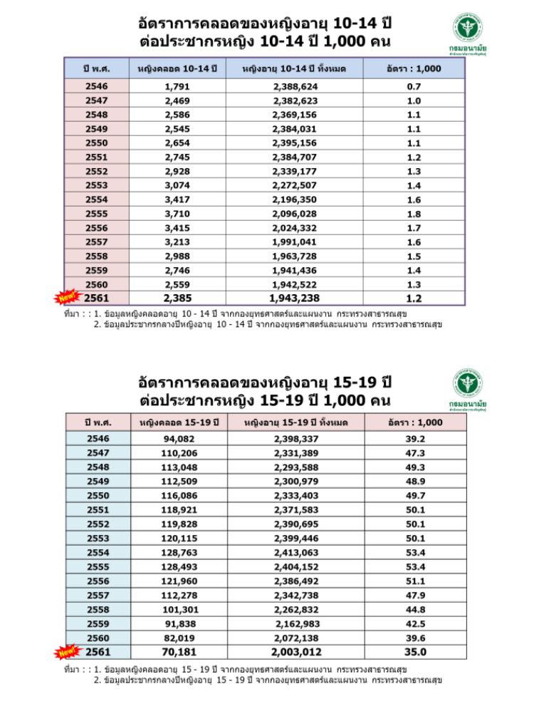 และมีแนวโน้มว่าจำนวนหญิงตั้งครรภ์อายุ 15-19 ปี ของไทยในแต่ละปี จะลดลงเรื่อยๆ