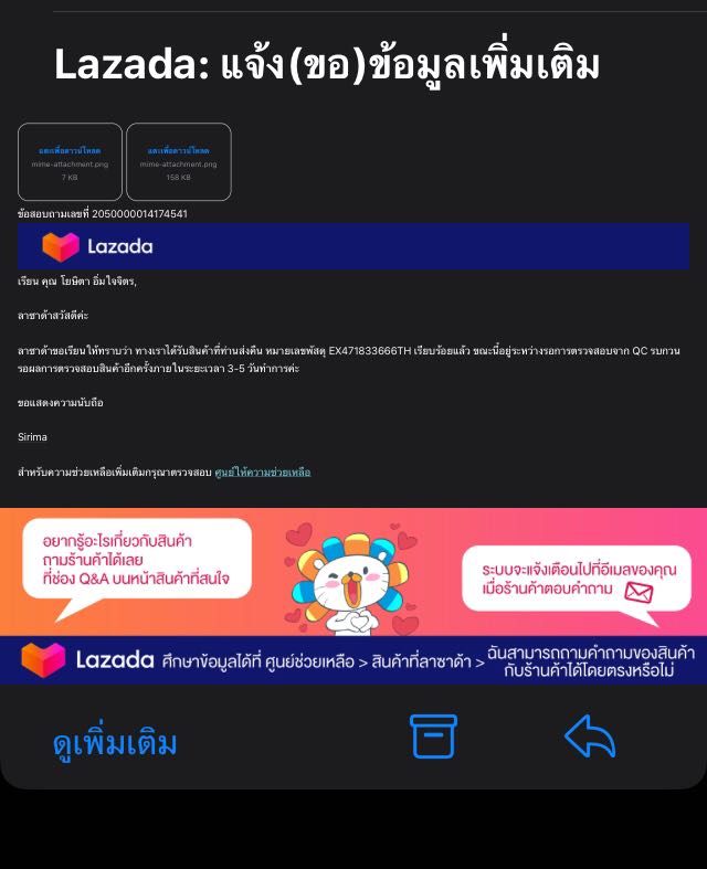 เรื่องเกิดจาก มีของจากลาซาด้ามาส่งที่บ้าน ก่อนมาส่งก็มีคนโทรมาบอกว่าจะมีของมาส่งนะ เราก็เลยบอกคนที่บ้านให้รอรับ พอของมาส่ง คนที่บ้านก็ถ่ายรูปของที่มาส่งให้เราดู แล้วเราก็จำได้ว่าไม่เคยสั่ง พอเข้าไปดูในแอพ ก็ไม่มีข้อความแจ้งว่าได้รับของแล้ว เราเลยเช็คคำสั่งซื้อ ก็คือไม่มีคำสั่งซื้อนั้น จากแอคเค้าท์เรา เราเลยโทรหาคอลเซนเตอร์ลาซาด้า เราก็อธิบายในส่วนของเราให้เค้าฟัง เค้าก็เช็คแล้วก็ส่งเมล์มาให้เราทำเรื่องคืนของละขอเงินคืน วันถัดมาเราก็เอาของไปส่งคืน พร้อมแนบเอกสารยืนยันตัวตนกับเลขบัญชีของเราส่งเข้าทางเมล์ไป