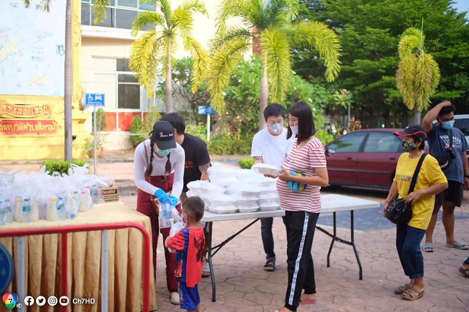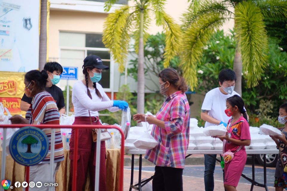 ฮาน่า ลีวิส พร้อมด้วยเพื่อน ๆ นำถุงยังชีพของใช้จำเป็นและข้าวกล่อง ไปบริจาคให้กับพี่น้องชุมชนท่าอิฐ
