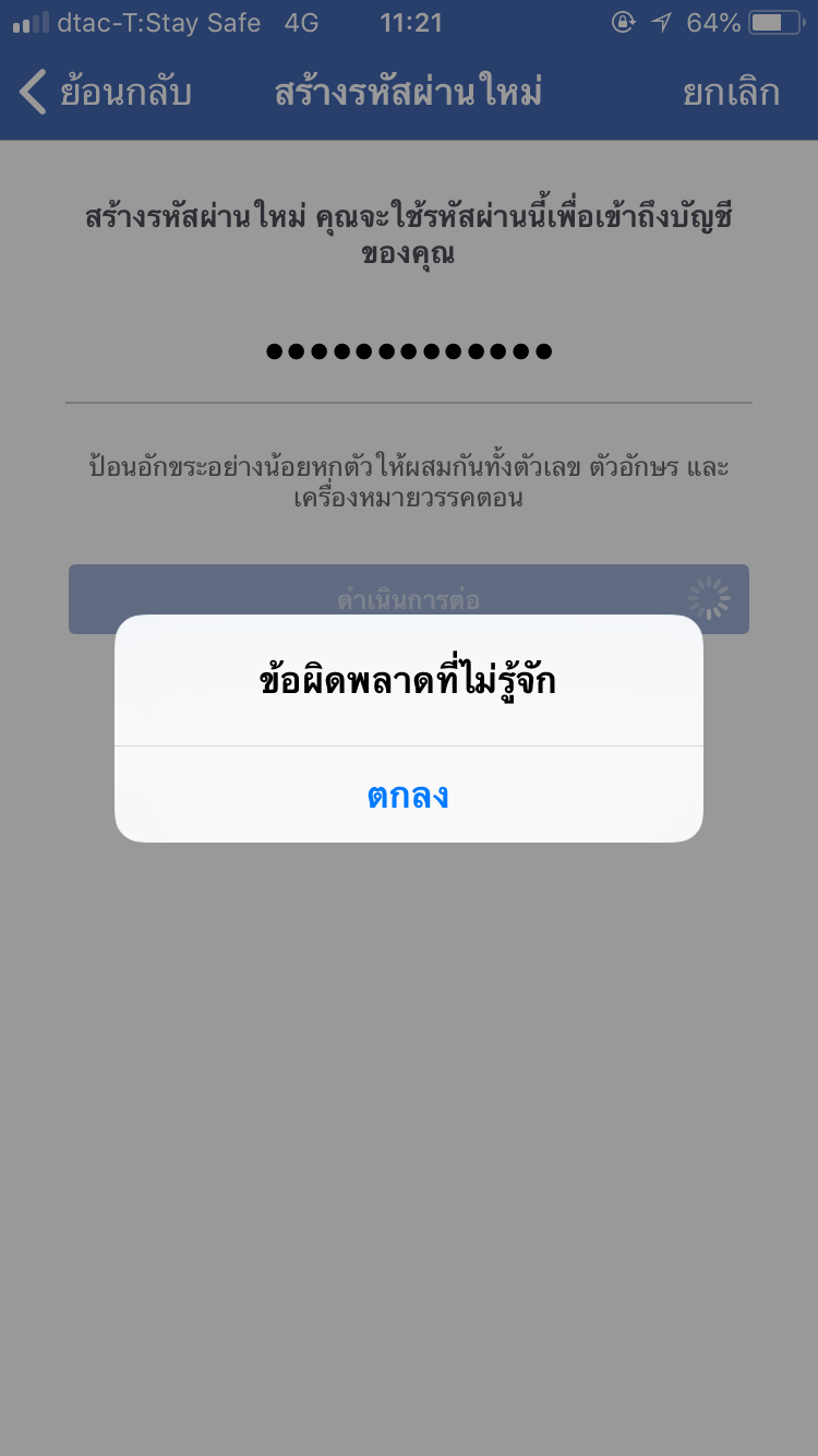 ใส่รหัส sms เฟสบุ๊คแล้วขึ้นเกิดข้อผิดพลาดที่ไม่รู้จัก