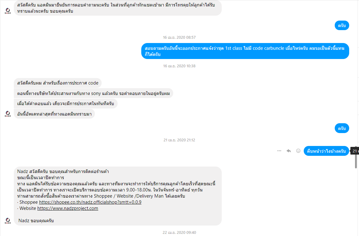 ให้ภาพเล่าเรื่อง หลักๆคือผมซื้อสินค้าจากคนขายคนนึงเป็นสินค้ามือ 1 ห่อซีลมากจากร้าน(ไม่ใช่จากร้านโดยตรง) สินค้ามีปัญหาติดต่อร้าน ไม่ได้มีการแก้ปัญหาให้อย่างใด โยนให้ไปคุยกับที่อื่นทั้งๆที่ควรเป็นหน้าที่เค้า ผมต้องติดต่อไปทาง square enix เพื่อสอบถามปัญหาเอง ขอเอกสารหรือประกาศจากทางร้านก็เงียบไม่ทำอะไรเลย มีข้อเสนอคือจะซื้อสินค้าคืนนั่นคือการแก้ปัญหาของทางร้าน ปัจจุบันไม่มีการติดจากร้านมาหลายวันแล้ว ติดต่อกันตั้งแต่ 12 เมษายน 2563 ปัจจุบันผมติดต่อกับอีกบริษัทที่มีส่วนเกี่ยวข้องแทน และทางร้านมีการลบภาพที่เกี่ยวข้องที่ใช่เป็นหลักฐานทางคดีออกไปทั้งหมด
