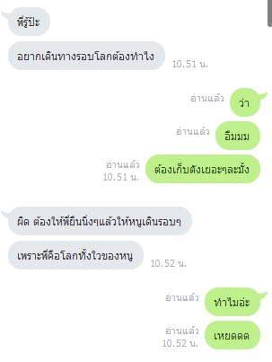 นั่นจึงเป็นสาเหตุให้มีคำๆนึงหลุดออกมาว่า "พี่น้องเค้าไม่คาสายกันใช่ป่ะ" ผมก็ตอบกลับไปด้วยประโยค "มีพี่น้องที่ไหนคาสายกันอ่ะ" น้องเค้าตอบกลับมาว่า "มีสิ เราไง" เจ็บ!!!!!