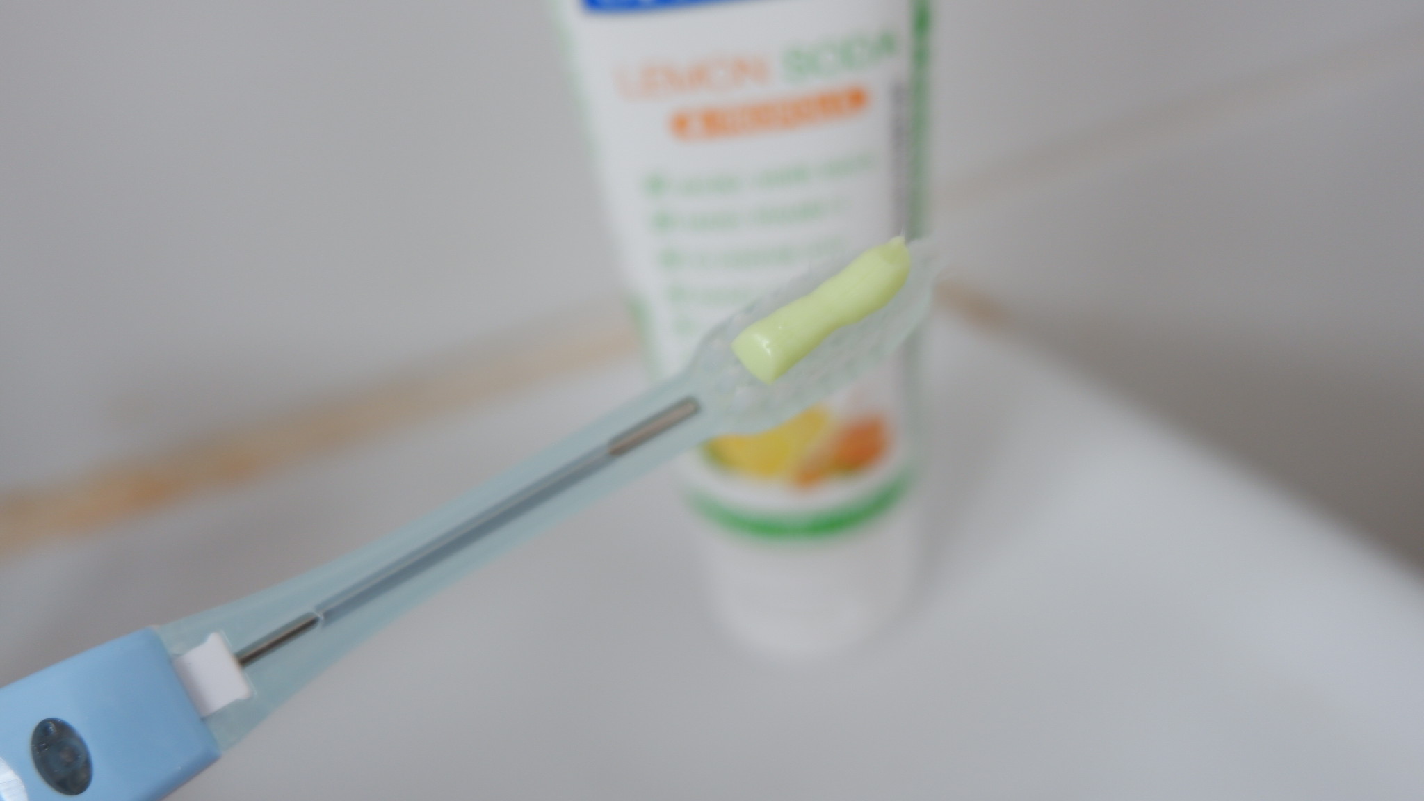 เนื้อยาสีฟันเป็นสีแบบเขียวมะนาวเลย มีกลิ่นหอมมะนาวด้วย ละเวลาที่เราแปรงคือฟินอะ อร่อยบอกไม่ถูก รสชาติดีไม่เผ็ด บ้วนออกง่ายไม่เหลือฟองไม่เหลือคราบให้ต้องบ้วนซ้ำๆ รู้สึกคลีนๆ เลย สดชื่น สะอาดไปพร้อมๆ กัน ทำให้เล็กรู้สึกสนุกกับการแปรงฟันมากขึ้นด้วย