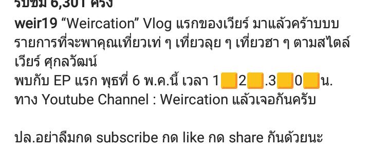 ในช่อง Weircation ของพี่เวียร์ ฟีลลิ่งคล้าย ๆ ซูเปอร์เวียร์ ย่อม ๆ แต่มีความเป็นกันเอง มีความหยอกล้อ มีมุมน่ารัก ๆ มีเบื้องหลังกองถ่าย