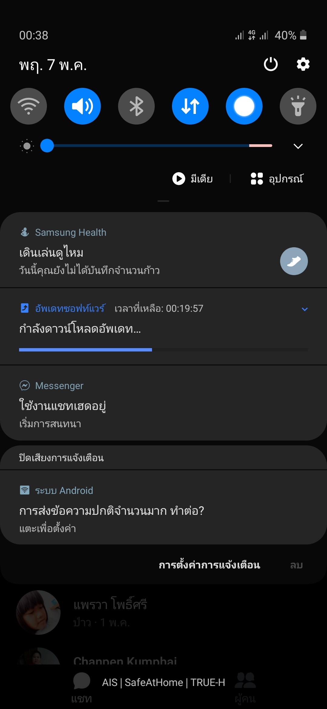 สวัสดีค่ะ ขอรบกวนหน่อยค่ะ พอดีปกติการแจ้งเตือนจะดูจากแถบหน้าจอข้างบน เวลาเมล์เข้า ไลน์ ข้อความเข้า จะมีแถบแจ้งเตือนด้านบน แต่ตอนนี้ไม่ขึ้นเลยค่ะ เราใช้ ss. รุ่น