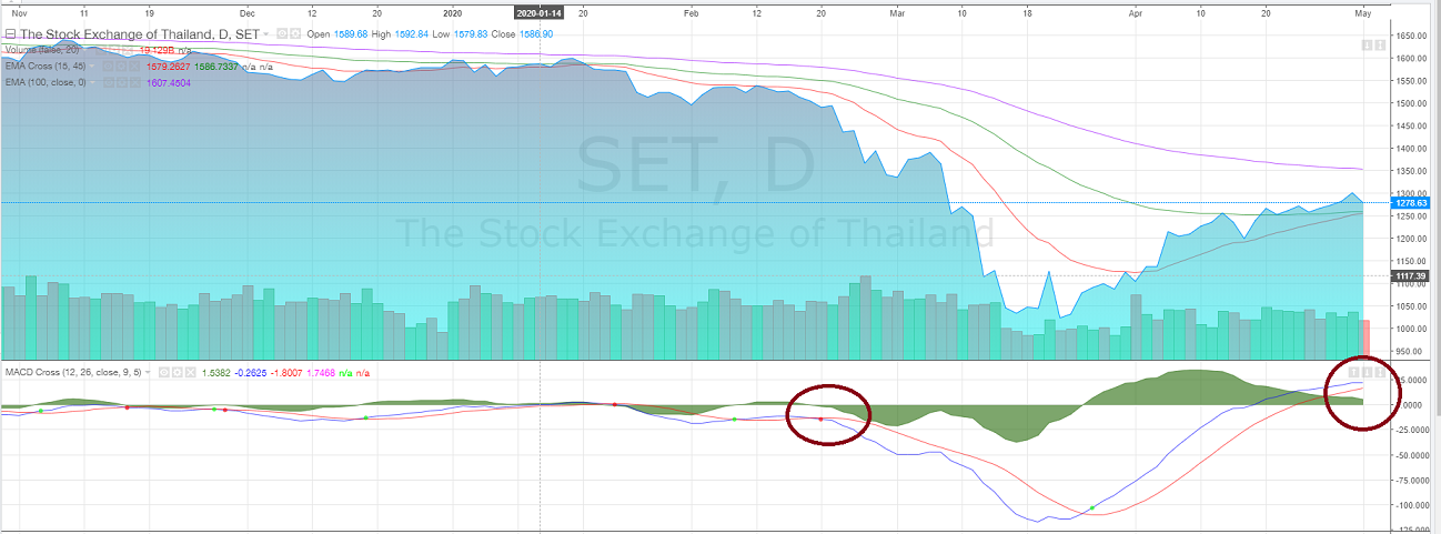 PTT กำลังจะเป็น ต้นแบบ กราฟให้ทั้ง Dow SET และ ตัวอื่นๆ วิ่งตาม (ตัดลงแล้วตัดขึ้นเพียงไม่กี่วัน)