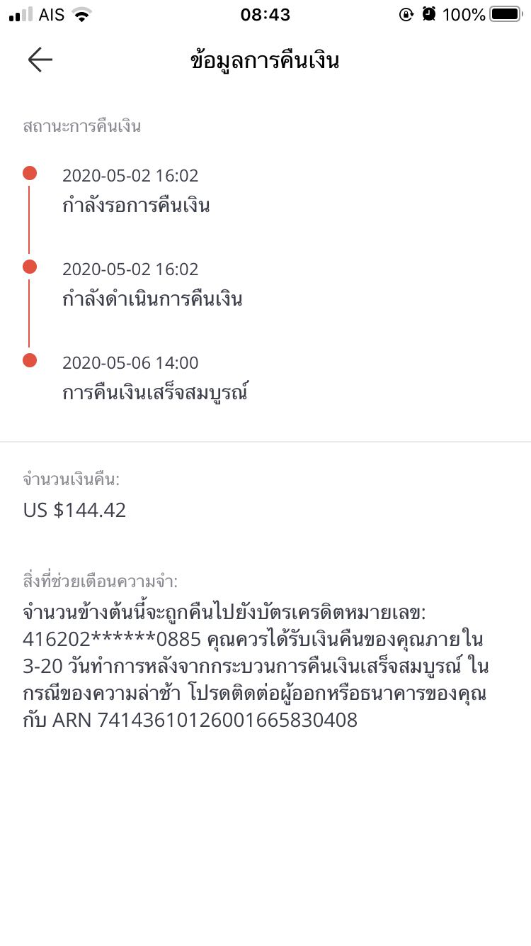 ขอคืนเงินจาก aliexpress