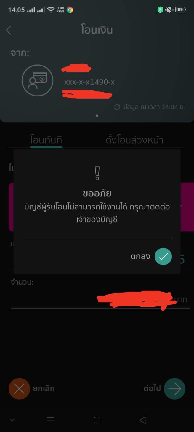 โอนเงินไม่เข้าบัญชี แต่ถูกตัดยอด