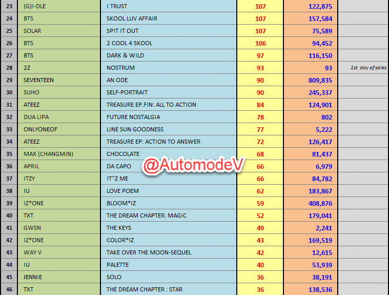 ยอดซื้ออัลบั้มจากชาร์ต HANTEO 28 พฤษภาคม 2563