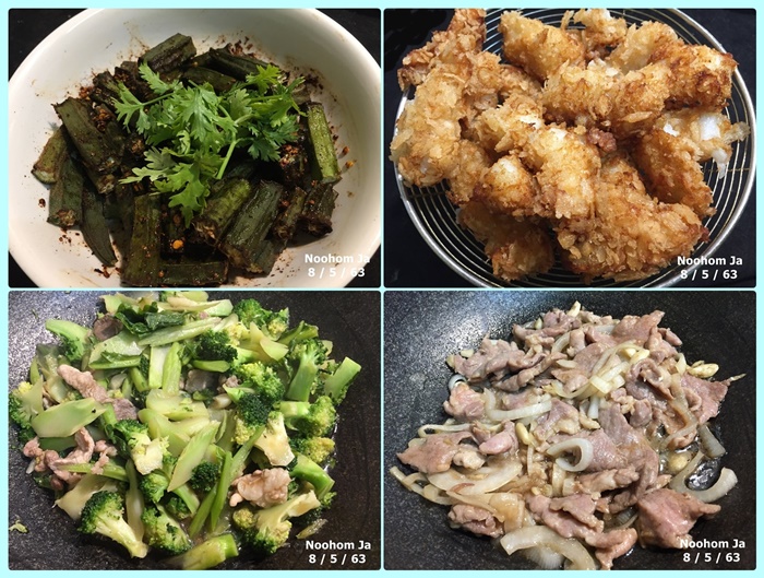 เชียงใหม่ คืนที่ผ่านมาพายุฟ้าฝนยังมีคำรามพัดขู่มาจนไฟฟ้าดับต้องระมัดระวังกันหลายเรื่อง เมนูอาหารบ้านเราเช้านี้ กระเจี๊ยบผัดพริกเผา เนื้อปลาทอด ผัดบล็อกเคอรี่ หมูกระเทียม ขอให้ธนัญญาและเพื่อนมีทรัพย์สินเงินทองพอใช้จ่ายอยู่สุขสบายปลอดภัยจากโรคร้าย สบายดีมีสุข