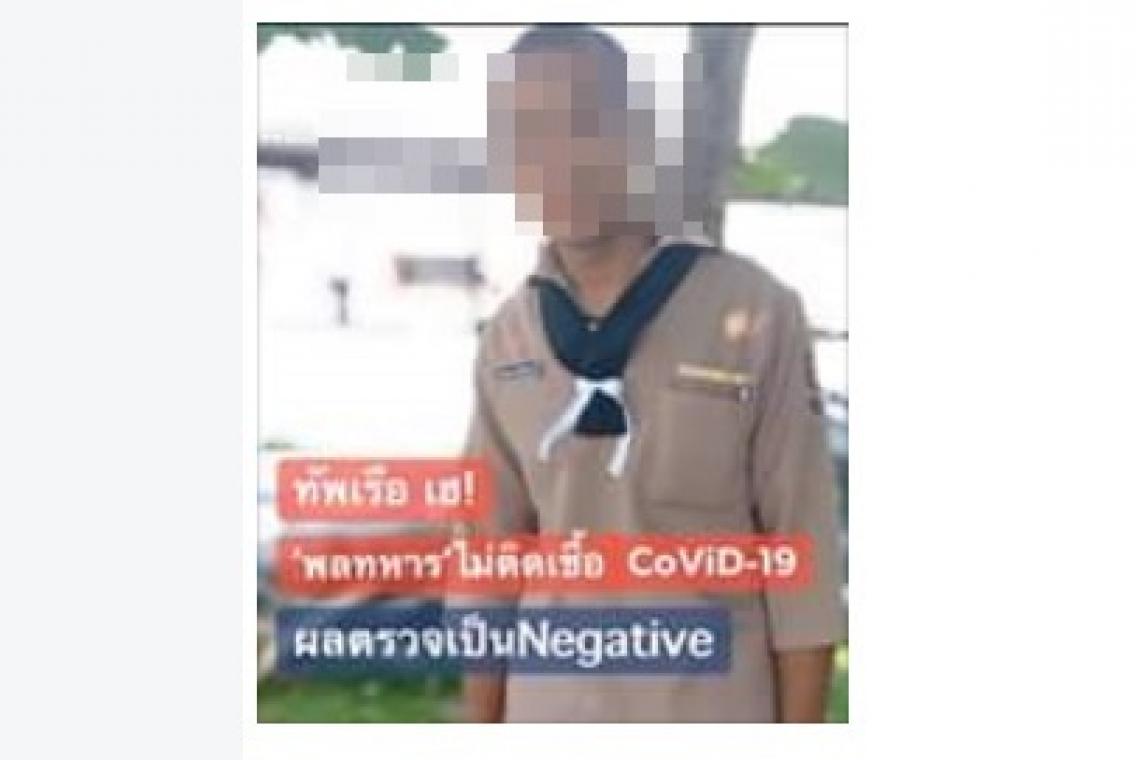 เพจเฟซบุ๊ก Wassana Nanuam โพสต์ข้อความระบุว่า...ทัพเรือ เฮ! เผย ผลตรวจ สารคัดหลั่ง ครั้งที่3 ผลตรวจเลือด เป็นNegative “พลทหารเรือ” ไม่ติดCoViD19 เตรียมพาตัว 14 ทหารเรือที่ไปกักตัว สังเกตอาการ ที่อาคารรับรองสัตหีบ กลับหน่วย คาดอาจเกิดErrorในการตรวจ ครั้งที่1 ที่พบเป็นบวก: ติดเชื้อ แต่ตรวจ ครั้ง2 เป็นลบ:ไม่พบเชื้อ จนที่สุด ผลตรวจSwap -เลือด ที่รพ.จุฬาฯ เป็นNegative ไม่พบติดเชื้อCoViD19