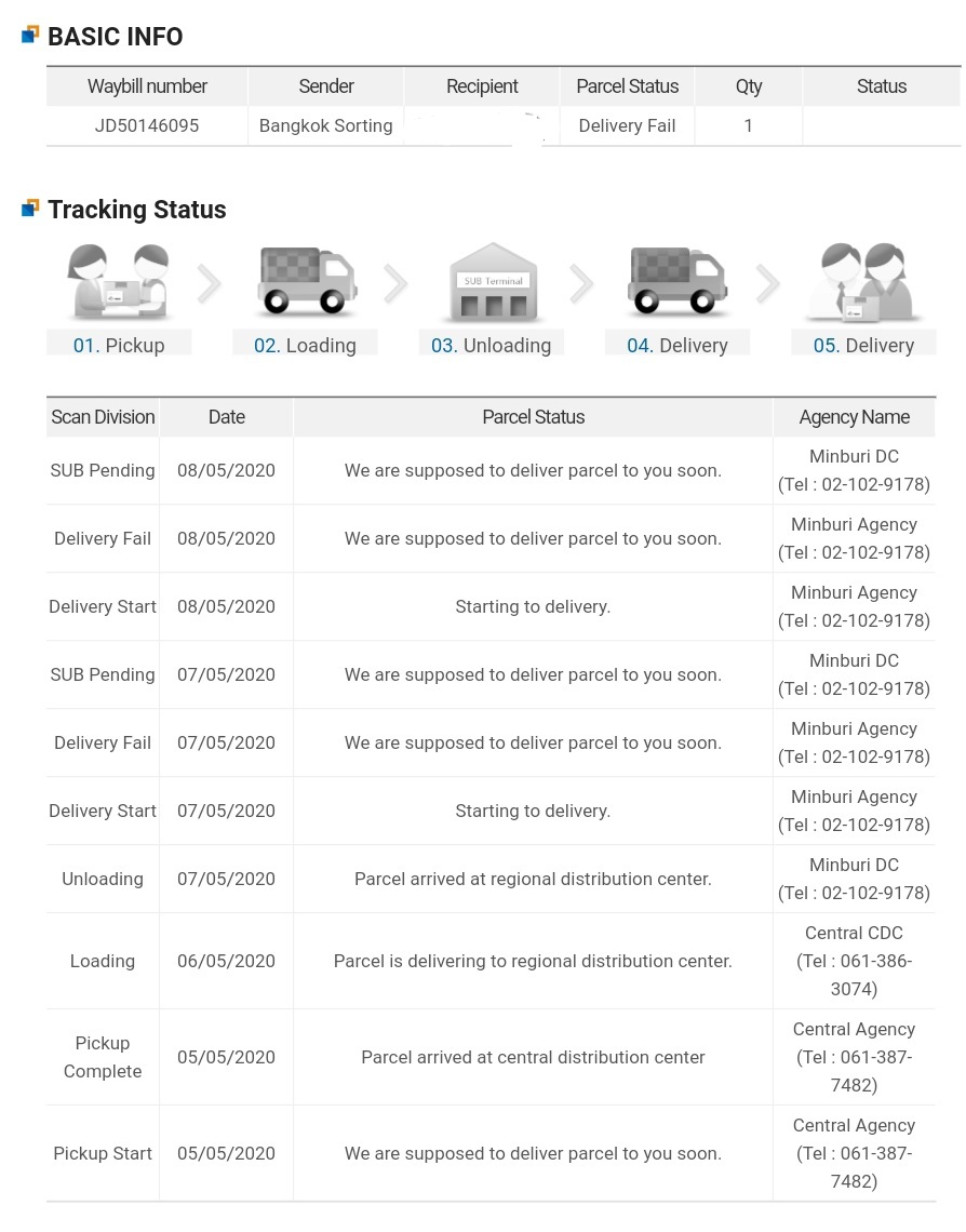 สั่งของจาก JD Central ไปตั้งแต่วันที่ 29/9/2019 ยังไม่ได้ของ