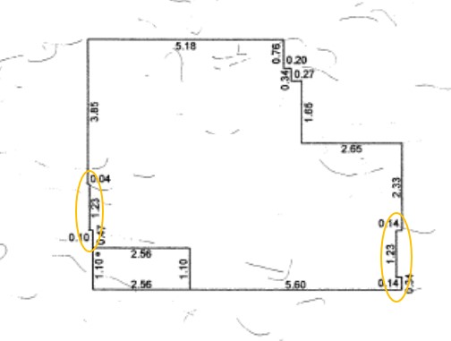 รูปส่วนที่ยื่นออกมาในห้องนั่งเล่น (ฝั่งซ้ายในรูปแปลน) ส่วนนี้ก็ไม่ตรงกับโฉนด จะเห็นว่าในโฉนดมีสองขยัก แต่ห้องจริงมีขยักเดียว