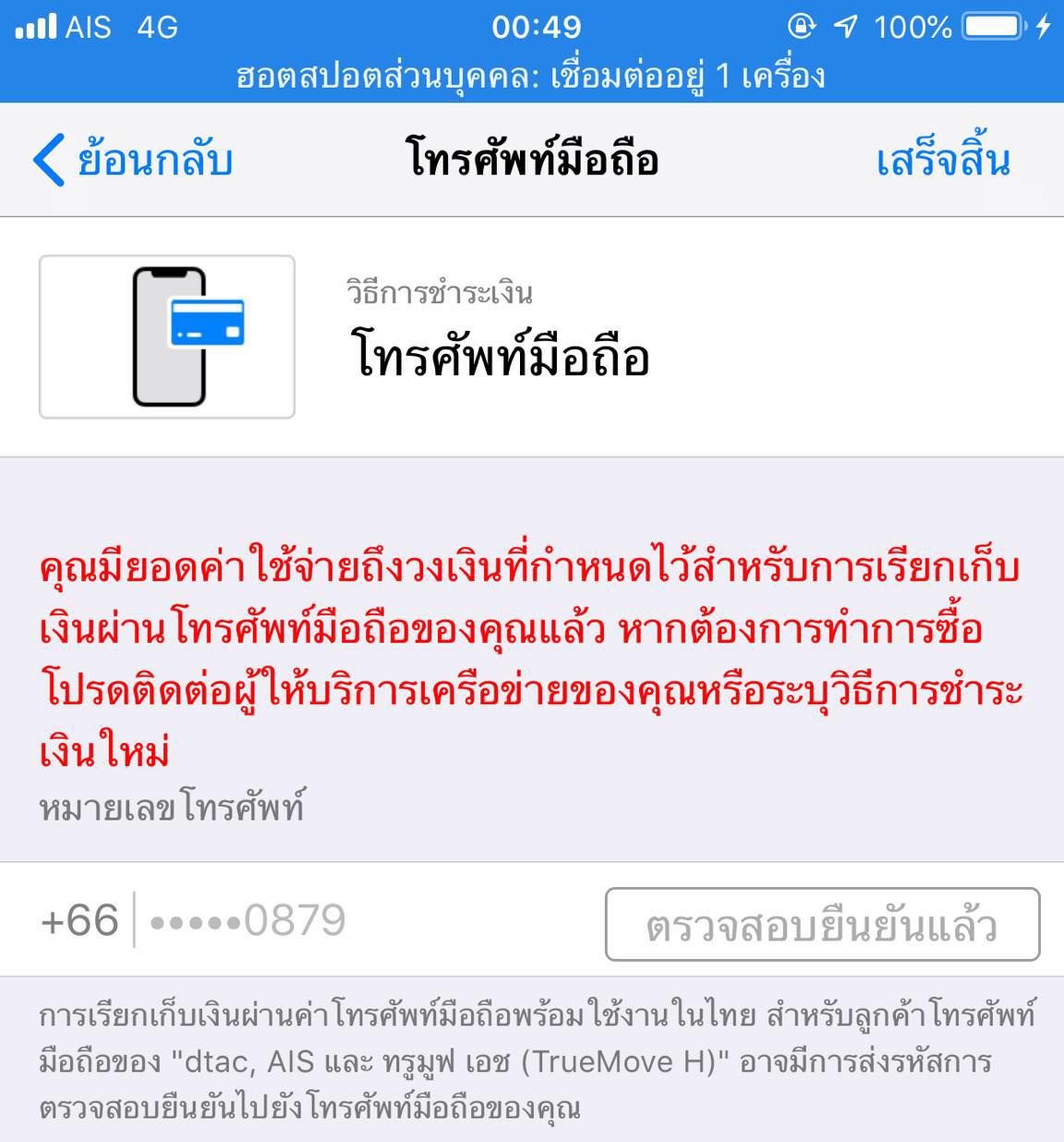 ทำไมถึงชำระค่าบริการ App Store ผ่านเบอร์โทรศัพท์ไม่ได้