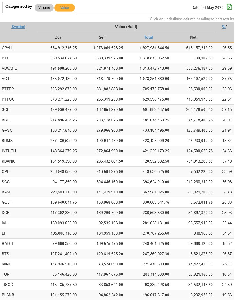 นักลงทุนต่างชาติ NVDR ซื้อ-ขาย มูลค่าสูงสุด 25 อันดับ 08/05/63