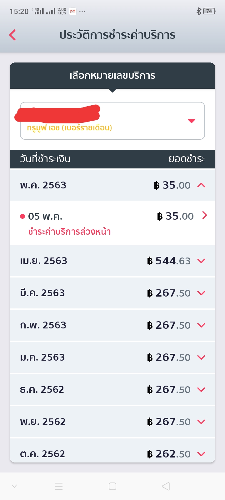 ค่าบริการชำระแล้วของ เมย.63 และชำระล่วงหน้าของ พค.63 และวันที่ไปปิดก็ชำระไปอีก
