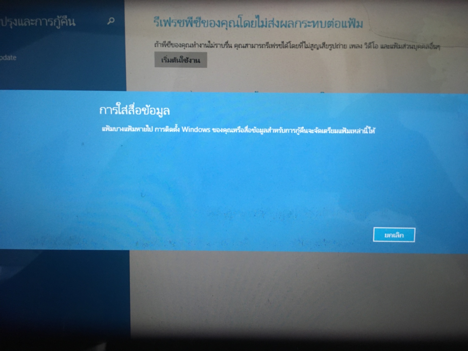 กด “เอาทุกสิ่งออกแล้วติดตั้ง Windows ใหม่” แต่ไม่สามารถดำเนินการต่อได้ครับ
