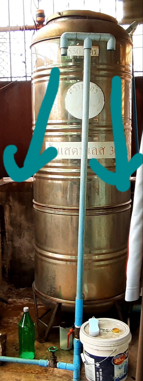 น้ำพุ่งออกมาเป็นระยะๆ (แค่นิดเดียว ทั้ง 2 ฝั่ง) ทั้งที่น้ำในแทงค์ ระดับต่ำกว่า ท่ออากศ (ตามเส้นแดง)