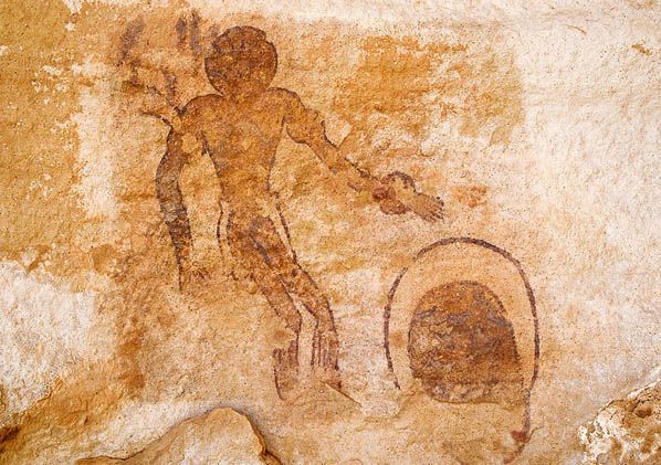 มนุษย์อวกาศบนผนังถ้ำ Tassili n’Ajjerแห่งแอลจีเรีย