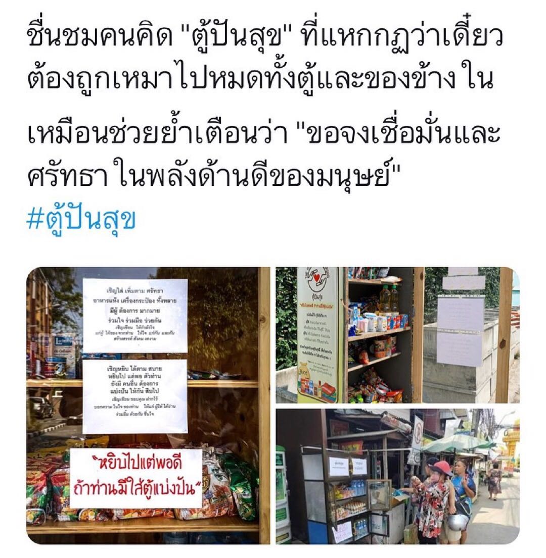 ชื่นชมจริง ๆ ทำได้ดีมาก ตู้ปันสุข ตอนนี้แถวบ้านเราก็เริ่มมีแล้วนะ